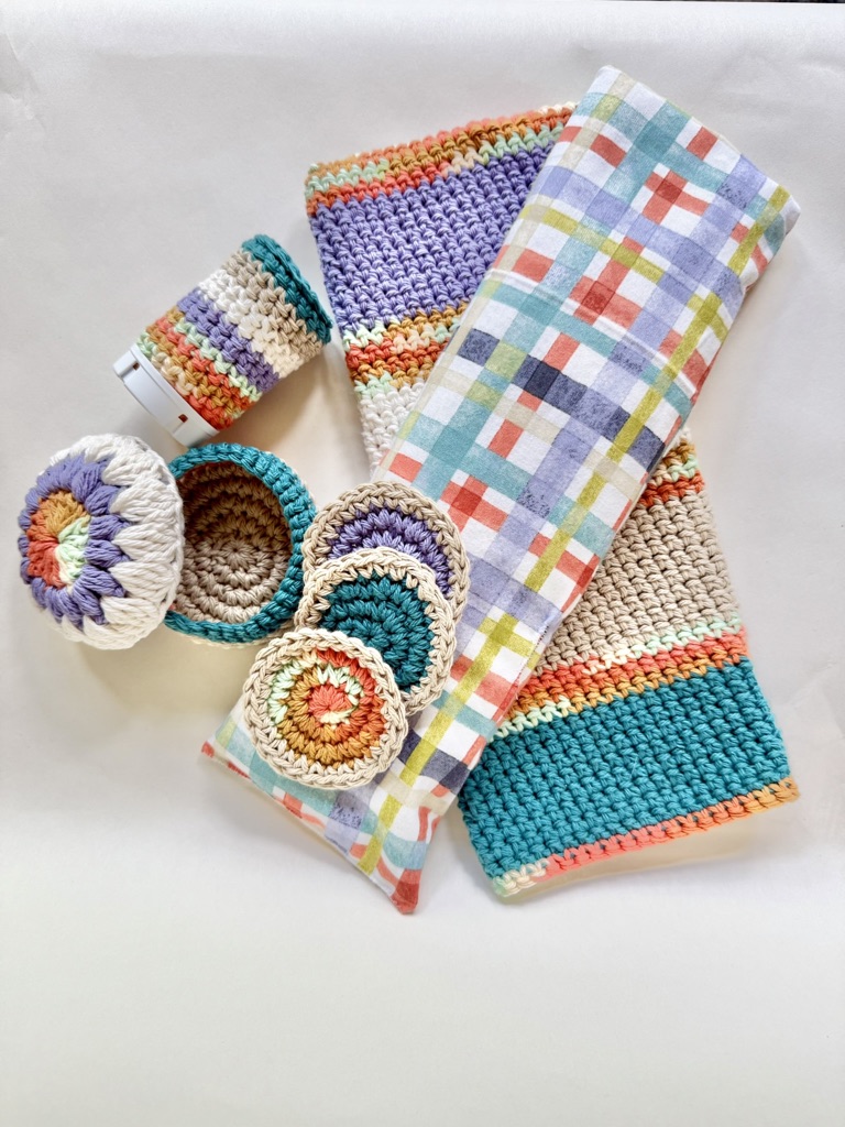 These self care sets are handmade, 100% cotton and come with a microwaveable neck warmer, Med(ication) Snuggler, and reusable/machine washable facial rounds with a cute container. Perfect college gifts that can be made in collegiate colors.